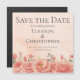 This old fashioned peach watercolor save the date magnetic card features beautiful vintage coral roses and lovely light green vines. Antique sweet rose garden border around your romantic summer magnet invite details.