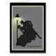 A super, romantic design which shows a loving couple dancing in the street. A charming streetlight gives off a soft glow to highlight the silhouetted couple. Add a smattering of stars and you have the perfect touch of romance. The front has the word "Congratulations" written across the bottom. There is plenty of space inside to include your personal message or feel free to delete it and hand write your own once you receive it. An all around sweet and wonderful wedding card!