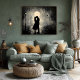A romantic black and white artwork depicting a couple embracing beneath the moonlight on a quiet, rain-soaked street. This minimalist, cinematic scene captures intimacy, silence, and emotional connection, making it ideal for elegant interiors and timeless romantic wall decor.