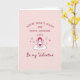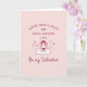 This Valentine's Day card shows a small Cupid sitting calmly on a fluffy white cloud against a soft pink background. Cupid has a simple, cute face, curled hair, and a red outline, and it holds a solid red heart close to its chest. Around Cupid, little red hearts and tiny star-like marks float in the open space, adding a sweet, romantic feel. Across the top, the card says “WHERE HEARTS BLOOM AND CUPID WHISPERS LOVE” in thin, flowing red cursive text that curves gently over the character. Near the bottom, it reads “Be my Valentine” in matching red cursive, placed like a friendly note under the cloud. The limited colors—light pink, white, and deep red—keep the focus on love and affection. It feels warm, simple, and caring, perfect for someone you adore 💕❤️. Share it to help someone feel loved and remembered this Valentine’s Day.