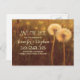 country rustic save the date postcards with two dandelion blossoms. Romantic and lovely save the date for dandelion and nature inspired wedding.
