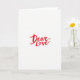 This greeting card keeps things simple and focuses on the message “Dear Love,” as the main design. The words are written in red script that looks like hand-lettered calligraphy, with smooth strokes and a personal feel. The text sits centered on a plain white background, so your eyes go straight to the message. A sweet detail is in the word “Love,” where the “o” is replaced with a small outlined heart shape. There are no characters or extra objects, just the red lettering and the heart, which makes it feel like a short note from someone close ❤️. The strong red-on-white contrast gives it a warm, romantic look without needing anything else 💌. It’s a lovely way to send a simple message of affection this Valentine’s Day 🍫—share your feelings and let someone know they’re loved.