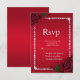 Beautiful romantic floral design RSVP suitable for women's events. A stunning ruby red background with a shiny rhinestone diamond frame encasing your event details with 2/two decorative red roses in the corners. Fashionable, sophisticated, stylish, trendy, classy feminine birthday invitation. All text, font, and font color is customizable. If you would like help to customize your product or would like matching products please contact me through my store and i will be very happy to help you.