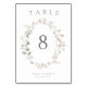 Romantic Delicate Blush Floral Wreath Wedding Table Number