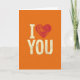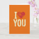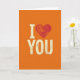 This card features the simple message “I ❤️ YOU” stacked in a tall, vertical layout. The background is a burnt orange color with a worn, speckled texture that looks like aged paper. The letters “I” and “YOU” are in an off-white, slightly yellowed tone, and they’re set in thick, plain letter shapes that are easy to read. A deep red heart sits in the middle, standing in for the word “love,” and it draws your eye right away ❤️. The whole design has a lightly scuffed look across the text and the heart, which makes it feel like a message that’s been kept and reread. It’s meaningful because it says exactly what you want to say, without extra fuss, and it works for romance or close friendship 🥰.