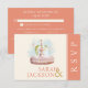 Elegant wedding response card features a lovely fountain and doves on the front with coral-colored accents. The back carries all of your particulars in a simple, elegant font and is super easy to update using the template.