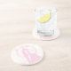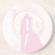A beautiful romantic wedding sandstone drink coaster design of the framed kissing silhouettes of the bride and groom against a dreamy pink background.
