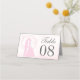 A beautiful romantic wedding design table place card of the framed kissing silhouettes of the bride and groom against a dreamy pink background.