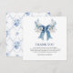 Romantic Dusty Blue Bow & Roses Wedding Thank You Card