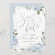 Modern faux silver foil handwriting save the date script and watercolor floral in dusty blue and sage green, elegant and romantic, great save the date cards for modern wedding, romantic wedding, and botanical garden wedding in spring and summer.