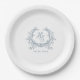 Romantic Dusty Blue Monogram Crest Wedding Paper Plates