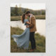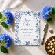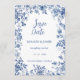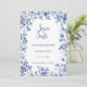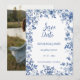 This beautiful design features a delicate blue toile botanical frame paired with a personalized photo on the reverse side, allowing couples to share a meaningful engagement or pre-wedding moment with their loved ones. The classic floral detailing creates a refined and romantic look, perfect for garden weddings, vineyard celebrations, destination ceremonies, and elegant estate venues.