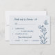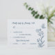 Unique simple wedding response card featuring romantic and elegant dusty blue flowers on light blue background