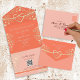 Elegant peach floral all-in-one wedding invitation with a QR code RSVP, customizable monogram, and delicate gold accents. Eco-friendly design doubles as an envelope, perfect for rustic or romantic weddings.