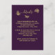 Unique simple calligraphy wedding enclosure card featuring romantic and elegant gold butterflies on purple background