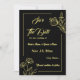 Unique simple wedding save the date card featuring romantic and elegant gold flowers on black background