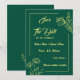 Romantic elegant gold flower emerald green wedding save the date