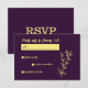 Unique simple wedding response card featuring romantic and elegant gold flowers on purple background