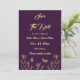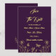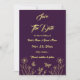 Unique simple wedding save the date card featuring romantic and elegant gold flowers on purple background