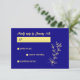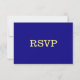 Unique simple wedding response card featuring romantic and elegant gold flowers on royal blue background
