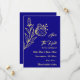 Unique simple wedding save the date featuring romantic and elegant gold flowers on royal blue background