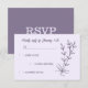 Unique simple wedding response card featuring romantic and elegant mauve flowers on light purple background