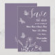 Unique simple wedding save the date invitation featuring romantic and elegant white flowers on mauve background