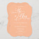 Invite your guests to share in the magic of your special day with this Elegant Romantic Calligraphy Script Peach Wedding Invitation. It's not just an invitation; it's a piece of art that encapsulates the essence of your love story in a blend of timeless calligraphy, minimalist design, and the soft allure of peach. Let this invitation be the perfect prelude to the beautiful celebration that awaits. Match other items from the collection.