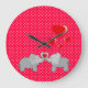 Romantic Elephants & Red Hearts On Polka Dots Large Clock