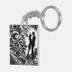 Romantic Embrace White & Black Floral Silhouette Keychain