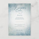 Announce your winter wonderland wedding with a touch of ethereal elegance. Our enchanting wedding reception enclosure card features a soft, dreamy background reminiscent of a twilight winter sky. Dusty blue hues blend seamlessly with delicate white accents, creating a canvas for softly falling snowflakes. A captivating white oval blur rests upon this serene landscape, cradling your wedding details in a romantic embrace. The text, a beautiful combination of flowing script and vintage serif fonts in a deep, dusty blue, stands out with elegant clarity. A simple, sparkling overlay give the effect of glistening snow. This enchanting suite captures the beauty of a winter snowfall, perfectly setting the stage for your love story to blossom amidst the magic of the season. Created by Simply Farmhouse Press.