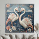 Romantic Flamingo Couple Art Deco Blue Pond Floral Ceramic Tile