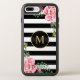 Romantic Floral Black White Stripes Monogram Otterbox iPhone Case