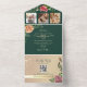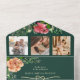 Capture timeless romance with this elegant emerald green and floral all-in-one wedding invitation. Featuring lush watercolor flowers in pink and peach, golden floral accents, and a sophisticated design, this eco-friendly invitation is perfect for fall weddings. The convenient all-in-one format means no envelope is needed—simply fold, seal, and send. Customize with your photos, text, and RSVP details for a beautiful and sustainable celebration.