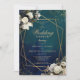 Romantic Floral Gold Wreath Emerald Green Wedding Invitation