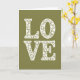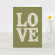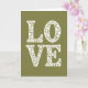 This card shows the word “LOVE” arranged in two rows, with “L O” on top and “V E” underneath, filling most of the front. Each letter is made from many small cream-colored circles and flower shapes packed closely together, so the letters look airy and a bit like lace. The background is a deep olive green, and you can see it peeking through the little gaps inside the letters. The flowers and circles vary in size, from tiny dots to bigger blooms with scalloped edges, which gives the design a lot of texture without feeling busy. There isn’t a separate message beyond the word “LOVE,” and it appears in these large, decorative letter shapes centered on the card. The calm green and soft cream colors feel steady and comforting, like a quiet reminder that love is made up of many small moments ❤️. It’s a meaningful card to give because it keeps things simple while still feeling thoughtful and caring 🥰, and it ends in a friendly way to help you share Valentine’s Day sentiments.