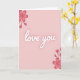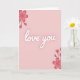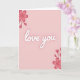 On the front of the card is a soft blush pink background that feels calm and romantic. In the center, the words “love you” appear in white cursive-style lettering that stands out gently against the pink. The letters look smooth and flowing, like a quick, heartfelt note, and they sit right in the middle of the card. In the upper left corner and the lower right corner, there are simple flower drawings in a deeper pink, each with five petals, small buds, and thin stems outlined with a slightly darker line. The flowers frame the message without crowding it, so your eyes naturally return to the words in the center. The overall look is quiet and sweet, making it easy to give to a partner, close friend, or anyone you care about 🥰. It feels meaningful because it says exactly what you want to say—without needing anything extra ❤️.
