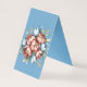 A beautifully illustrated bouquet of flowers. The bouquet consists of large, vibrant peonies in shades of terracotta and blue, complemented by smaller blue tulips. There are also green leaves and golden accents, possibly representing stems or other floral elements. The flowers are centrally positioned, with a pair of intertwined golden rings placed amidst them. The entire composition is set against a white background, emphasizing the colors and details of the flowers.