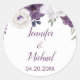 Romantic Floral Purple Silver Personalize Wedding Classic Round Sticker