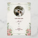 Front: Personalized names, date, and location with floral accents