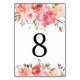 Romantic Floral table number cards feature big blooming pink, orange and coral watercolor flowers, accenting your table number in rich black. Design repeats on reverse side. Coordinates with our Romantic Floral watercolor floral wedding invitation suite.