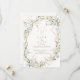 This romantic wedding design features a delicate floral arch of watercolor baby's breath and wild greenery, framing a timeless monogram crest. A graceful serif and script font combination makes it perfect for elegant celebrations, garden weddings, or vineyard ceremonies. Easily personalize names, initials, and event details. The botanical details add a soft vintage charm while maintaining a clean, modern layout.