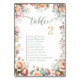 This elegant table number features a beautiful arrangement of peach and blush roses, accented with delicate greenery. The large, golden number '2' stands out prominently, ensuring guests can easily find their designated table. The intricate floral border adds a touch of romance and sophistication, perfect for weddings, parties, or any special occasion seeking a vintage and charming aesthetic. This design brings a touch of natural beauty and timeless elegance to your event's seating plan.