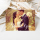 Romantic Flowing Script Photo Overlay Wedding Thank You Card