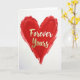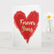 This greeting card features a large scarlet red heart painted with wide brushstrokes right in the center. The paint shows visible streaks and texture, giving the heart a handmade, heartfelt look, with slightly uneven edges that feel personal. The background is plain white, so the red heart stands out right away. Across the heart, the words “Forever Yours” appear in shiny gold script lettering. The gold text sits over the middle of the heart and looks like flowing handwriting, adding a sweet, special touch. Overall, it feels romantic and sincere, like a simple promise meant to last. ❤️