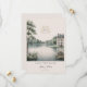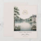 Announce your special day with timeless elegance. This refined save the date card features a delicate monogram crest and a romantic château landscape, creating a classic and sophisticated look.