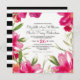 Romantic Fuchsia Floral Black Stripes Wedding Invitation
