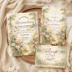 A joyful meadow of watercolor wildflowers blooms along the base of this elegant quinceañera design. Soft blush cosmos, delicate white daisies, buttery yellow blossoms, and airy blue florals rise against a warm parchment background, creating a fresh garden feel with timeless charm. Refined gold typography adds a graceful, celebratory touch while keeping the composition light and balanced. Perfect for a quinceañera celebration filled with romance, color, and countryside elegance.