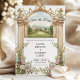 This invitation features a stately garden chateau framed by watercolor architectural details and lush watercolor florals in blue, ivory, and blush. The illustrated columns and arch create a graceful border, guiding the eye toward your names and event details. Perfect for couples who love romantic florals and elegant architecture, this design can be personalized with your names, date, and location. Choose your favorite paper and customize the back to create a Save the Date that feels timeless and uniquely yours.