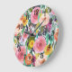 Romantic Garden Watercolor Flowers Large Clock